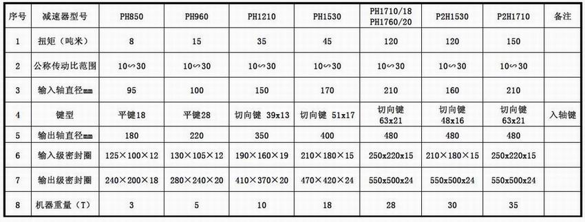 行星齒輪減速器技術參數(shù)表